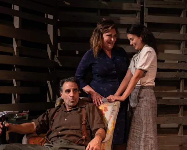 In fact, quite the opposite. Ray Abruzzo leads a cast in one of the best-acted dramas I’ve seen in the theater in many moons. Abruzzo portrays Eddie Carbone, who is, along with Salesman’s Willie Loman and The Crucible’s John Proctor, one of Miller’s most memorable, indelible protagonists, and Abruzzo does justice to the role he incarnates. Set in gritty, working class post-WWII New York City, Carbone is a longshoreman in Red Hook, a (then) Italian-American neighborhood near the Brooklyn Bridge.