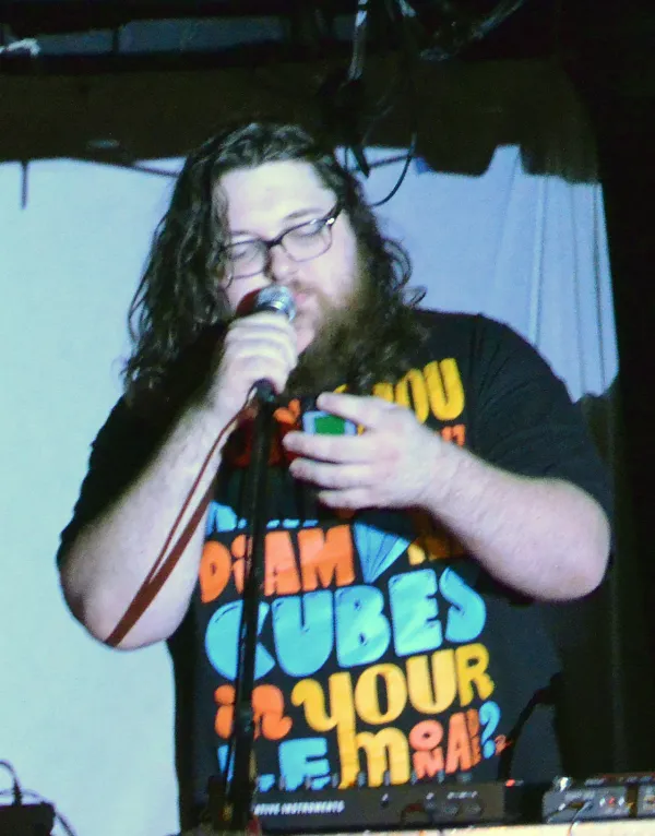 Jonwayne started the Columbus show with a towel wrapped around his head, and pounded out drums under vintage vocal samples.