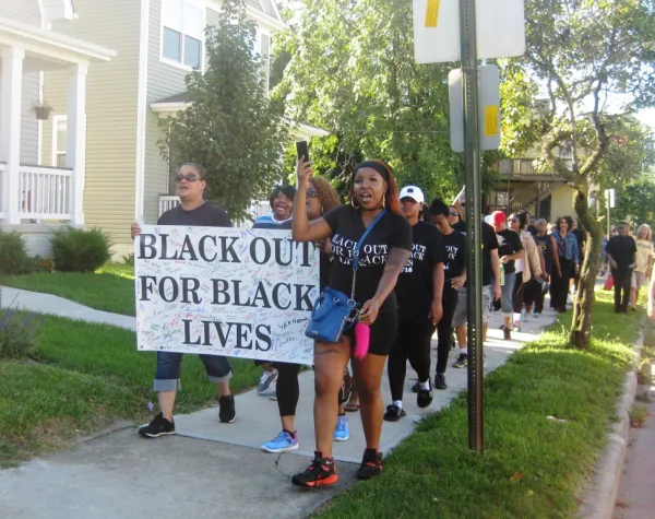 About 100 protesters kicked off the blackout by marching from Franklin Park to the King Arts Complex, where organizer Karla Carey explained the blackout strategy. “This weekend we’re asking that if you have to spend money, that you reinvest it in the black community, to keep the black community thriving.”