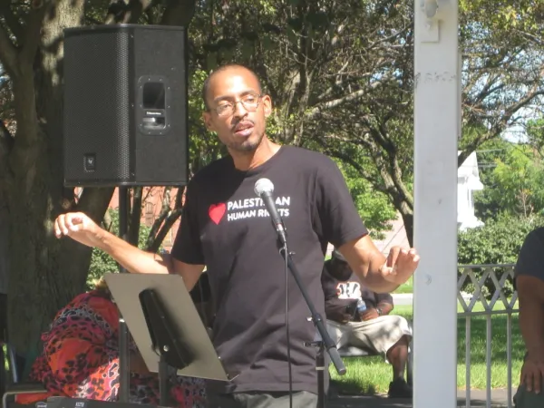 Community organizer Michael Vinson spoke about the attempt by Columbus Citizens for Police Review to establish a citizens’ review board to hold police accountable for misconduct. “The ballot initiative failed because few were willing to back it up with on-the-ground support, and City Council and the local Democratic Party are hostile to direct forms of democracy,” he said.