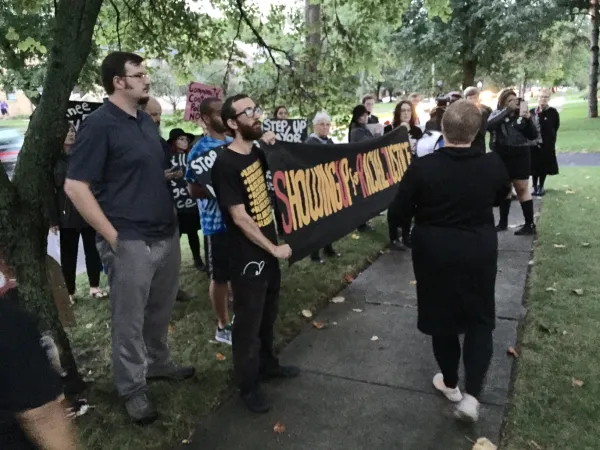 On Thursday, September 30, a group of Black Lives Matter activitsts took a knee for Ty're at North Broadway and High Street in Clintonville, then silently marched up North Broadway to Mayor AndrewGinther's home. The group of around 40 people peacefully protested the recent poice shooting of Ty're King and other Columbus police shootings. The community has noticed that since the shutdown of Monday's Columbus City Council meeting, the Mayor has been silent on the issue.