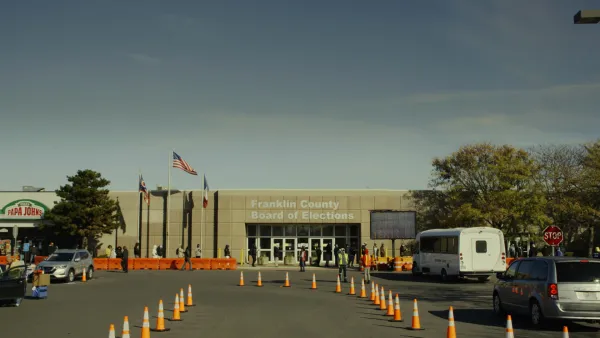 At the early voting line in Ohio’s most populous county, civic duty is a public performance.