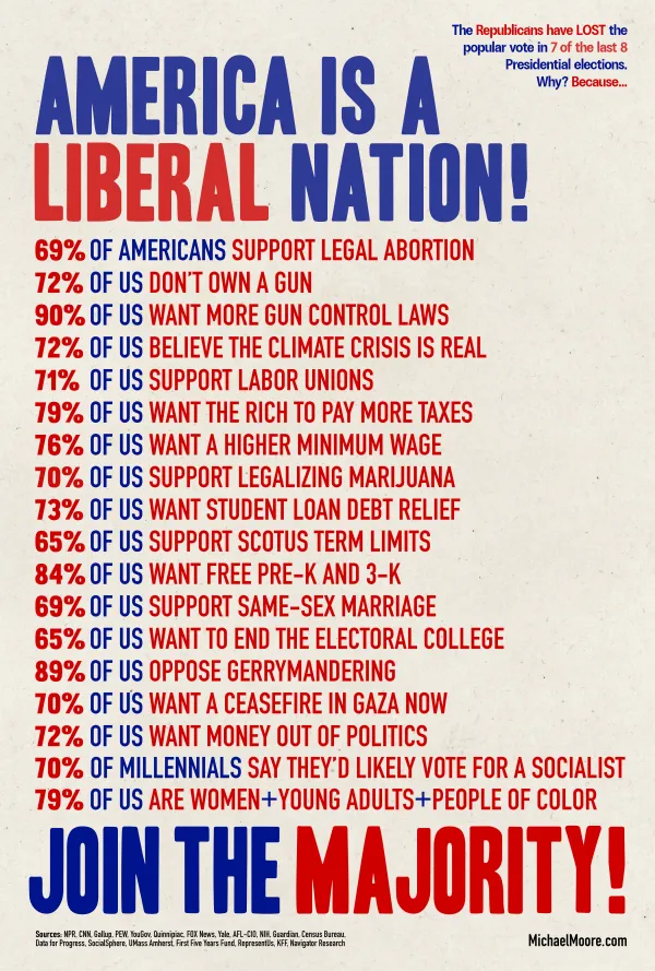 Join Michael Moore on Substack for more: Here are the facts and the sources so you can do your own fact-check and share this good news about our Liberal America with others: