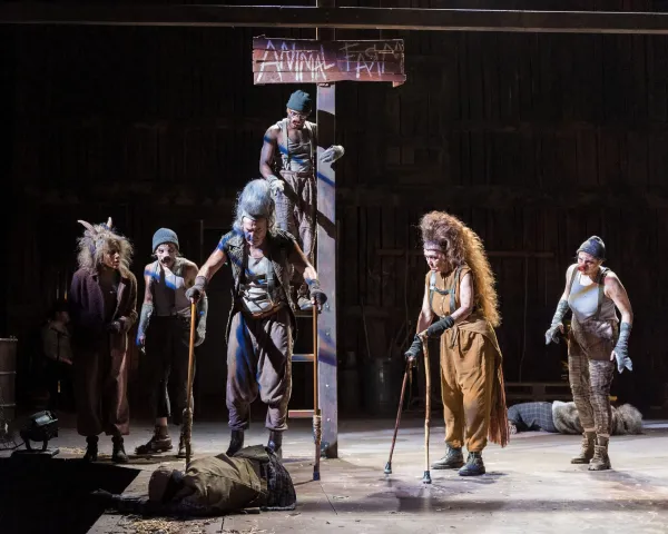 ANW’s superb production presents Sir Peter Hall’s Animal Farm, with live music by Richard Peaslee and lyrics by Adrian Mitchell, is a perfect choice to open over Labor Day weekend. The musical premiered at the UK’s National Theatre in that most Orwellian of years – 1984, but of course – and adapts the 1945 novella by George Orwell.