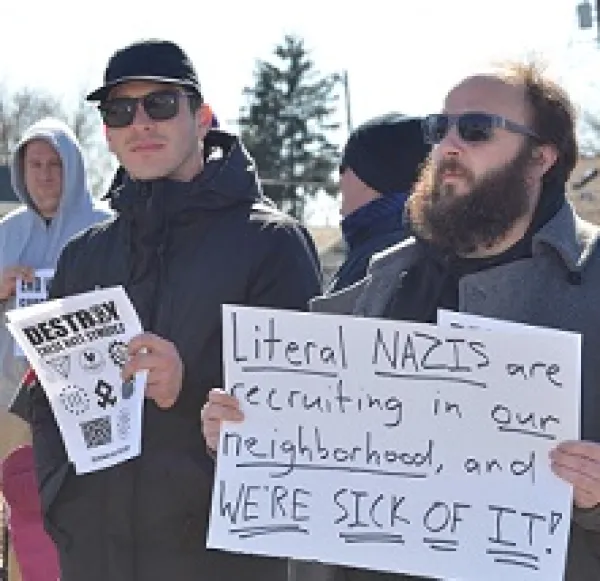 The neo-Nazi Patriot Front, was busy flyering down Indianola Avenue in Clintonville Monday, February 26 in broad daylight. Whenever local residents removed them, the flyers would soon reappear. The neo-Nazis have now flyered Clintonville four times in the last few months in addition to Hilliard, Worthington, Westerville, and Dublin.