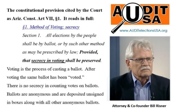 Audit USA won an important legal victory in 2016 with its lawsuit to require all Arizona counties to retain ballot images for 22 months after every election. As a result of AUDIT’s court case, all Arizona counties now preserve ballot images. Following this court decision, the Arizona legislature passed a law, § 16-625, to protect the original ballot image files from unauthorized access. While this law was a good step to protect the original images, Maricopa County has wrongly chosen to interpret it to mean that copies of the original ballot files cannot be given to the public, something that the legislature did not intend to happen.