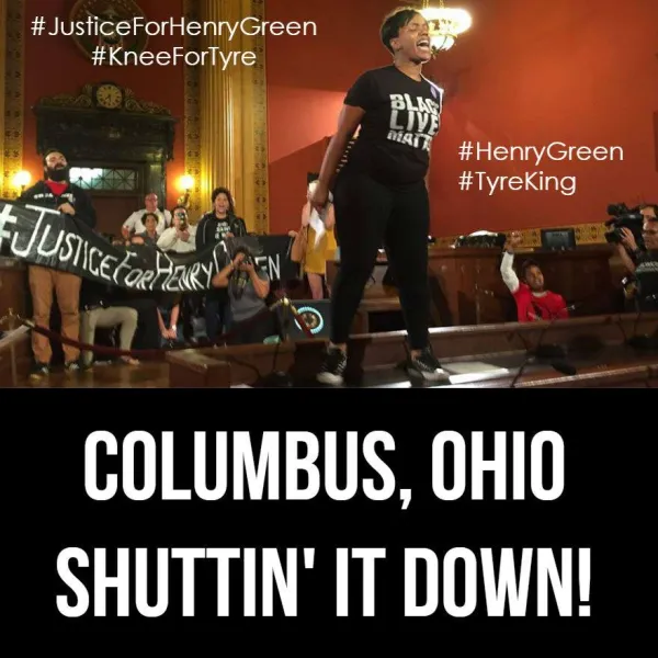 “We’re grateful that you’re taking time out of your day to be with us this evening,” City Council President Zach Klein told 150 audience members who came to protest the police killings of Tyre King and Henry Green. “It’s really important with all issues facing the City of Columbus that we have an engaged citizenry,” he said. “I’m grateful for the activism, the determination, the passion, and the resolve for justice, accountability, and transparency.”