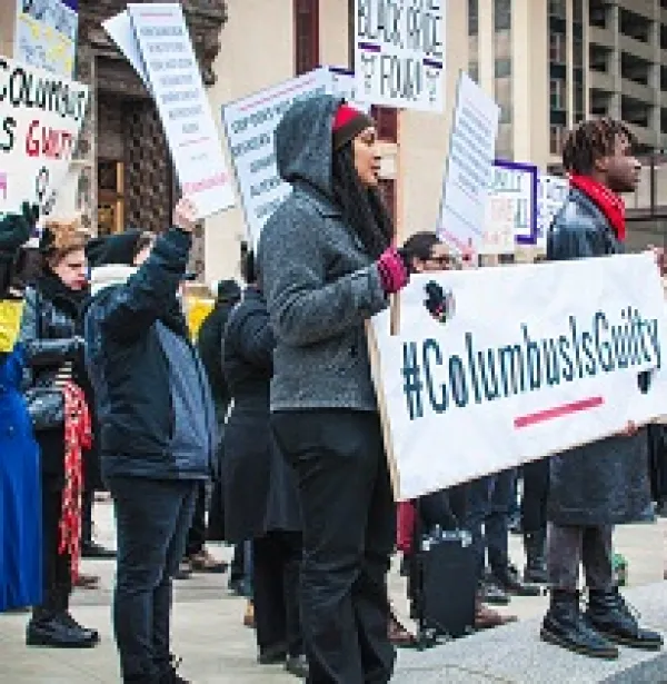 Intense pressure put on the city of Columbus, including a National Day of Action to Free the #BlackPride4 organized by GetEqual and Black Queer Intersectional Columbus BQIC) on Monday, had an impact. Supporters of the #BlackPride4 had simple message: #Columbusisguilty -- not the #BlackPride4 who were arrested when they held a silent vigil during the 2017 Stonewall Pride march. The vigil was to call attention to the murders of black trans people and killings of black people in Columbus by the police. Immediately, when the #BlackPride4 began a vigil in the street, Columbus Police jumped on them and brutalized them.