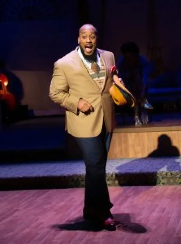 Three of Night’s warblers are female, and I believe these ladies who sing the Blues are intended to represent women at different stages in their lives. Jenna Gillespie Byrd portrays the character identified in the program as “The Girl with a Date,” who I guess personifies youth. As “The Woman of the World,” Karole Foreman (who previously played Billie Holiday in Lady Day at Emerson’s Bar and Grill, so her appearance here could be called “Day for Night”) personifies middle age. Broadway veteran and two-time Tony nominee Vivan Reed portrays “The Lady from the Road,” an aging onetime performer, perhaps on Vaudeville or chitlin circuit stages. At the opening night performance Chester Gregory, who also has a string of Great White Way credits, portrayed Night’s sole male character, “Man in the Saloon.”