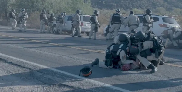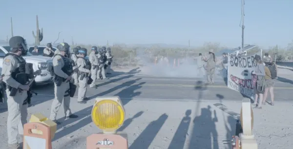 After tear-gassing protectors and snatching children from their parents, Border Patrol, State Troopers, and AZ Department of Public Safety advanced on the crowd shooting O’odham peoples in prayer with rubber bullets, hitting an O’odham man in the chest. We are seeking information on his condition and the condition of others who were shot at and will provide updates as we receive them. Border Patrol, State Troopers, and Arizona Department of Public Safety then arrested at least eight land protectors and pursued others, including media observers and journalists.
