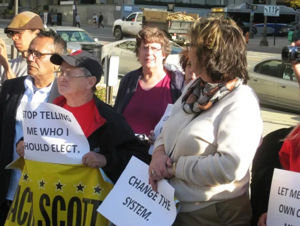 Supporters of Represent Columbus gathered for a press conference outside City Hall on October 19.