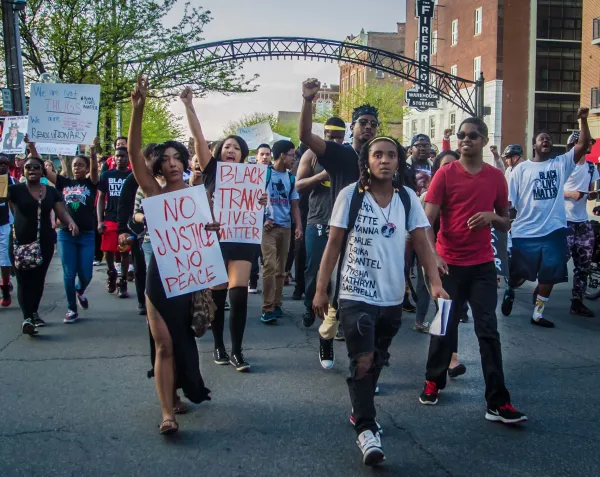 Hundreds of Columbus citizens marched in solidarity with the demonstrators in Baltimore asking for justice for Freddie Gray, who was killed while in police custody. The protestors started at the OSU Student Union and marcheddown High Street through the Short North on Saturday, May 2 during Gallery Hop. They gathered on the cap north of downtown to talk about their request to meet with Columbus Police Chief Kim Jacobs and discuss an initiative for a Civilian Review Board of the Columbus Police.