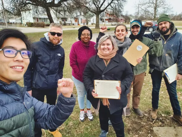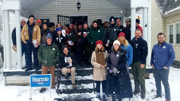 Democratic Socialists of America members canvass for Bernie Sanders on February 8. (Photo credit: Kristin Porter)