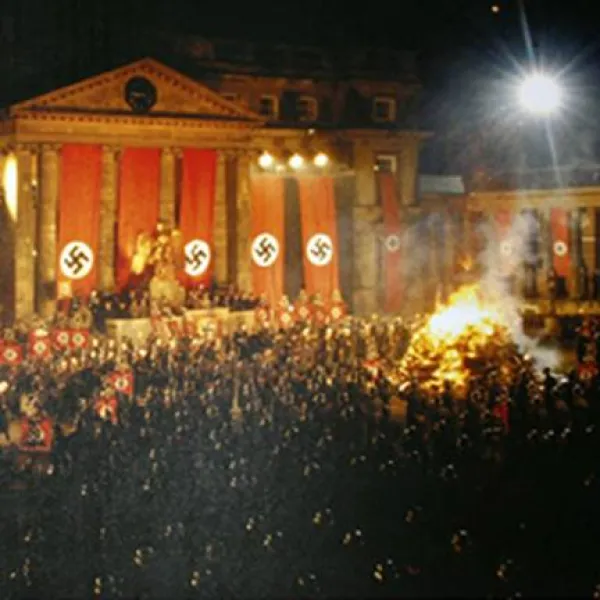Right-wing Germans preparing for the book-burning of 5/10/33 Crowd of flag-waving German fascists at the book-burning of May 10, 1933