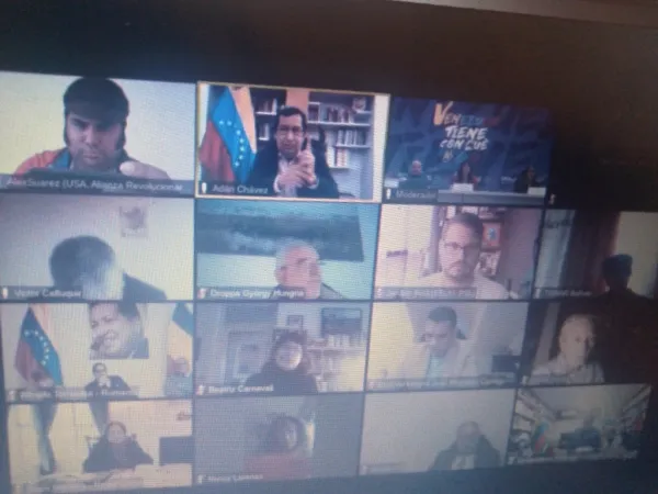 Image 4 Zoom meeting of Platform of Anti Imperialist Working Class (PCOA) a week before going, Adan Chavez is next to me in box, he had wrote a book about his experiences with his brother, I believe he was in Cuba by the time I got to Caracas.