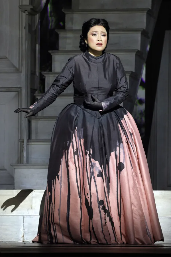 Although the first act is largely a romp, early on, after a liaison with Donna Anna (Chinese soprano Guanqun Yu), in what may be an act of self-defense, Don Giovanni kills the Commendatore (Chinese bass Peixin Chen), her father. When Donna Anna informs her fiancé Don Ottavio (California tenor Anthony Leon) of the Commendatore’s slaying, he promises vengeance and sets out to find whoever the killer may be.