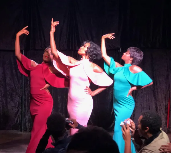 This pulsating production is imaginatively, creatively directed and choreographed with great panache by Tor Campbell, who also teaches dance. Tor rendered the choreo for the musical I wrote the book for, Still Standing, which we brought to Switzerland in 2010, and it was inspiring and a sheer joy to experience his artistry once again. During the opening night gala before the curtain was lifted, Tor, along with Apollo Levine (in addition to portraying Curtis he’s also Dreamgirls’ assistant choreographer), taught ticket buyers several dance moves and urged them to join in at their seats when those songs were played onstage. I’d never ever seen this at a play before. Knowing that the music and movement are so infectious it was as if Apollo and Tor were channeling the old time comedian Jimmy Durante: “Everybody wants to get into the act! Ha- cha-cha-cha-cha-cha-chaaaaaa!"