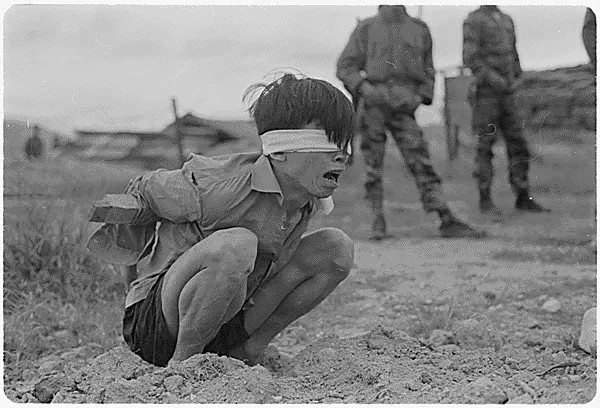 Thuong Duc, Vietnam....A Viet Cong prisoner awaits interrogation at the A-109 Special Forces Detachment in Thuong Duc, 25 km west of Da Nang.; National Archives and Records Administration, Public domain, via Wikimedia Commons