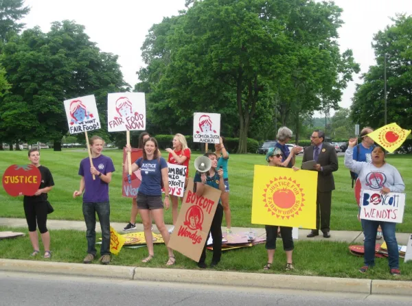 During the Wendy's annual shareholder meeting on May 26, faith groups and students from across the Midwest joined the CIW in a protest outside the company's corporate headquarters in Dublin, Ohio. Of the five largest U.S. fast food corporations, only Wendy’s has refused to join the Fair Food Program.