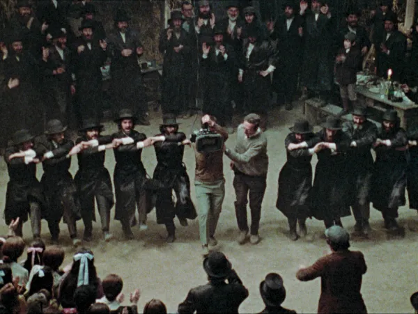 Director Norman Jewison (pointing) and star Tevye (holding hat) on the set of The Fiddler on the Roof. As seen in Fiddler’s Journey to the Big Screen. A film by Daniel Raim. A Zeitgeist Films release in association with Kino Lorber.
