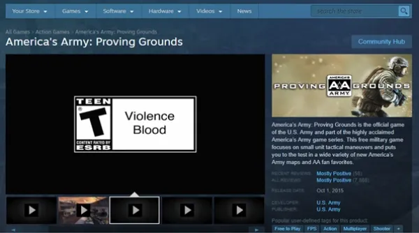 The America’s Army video game, a vicious first-person shooter game, has millions of avid fans. It is one of the world’s most frequently downloaded games. According to a study by researchers at the Massachusetts Institute of Technology, “the game has more impact on recruits than all other forms of Army advertising combined.”