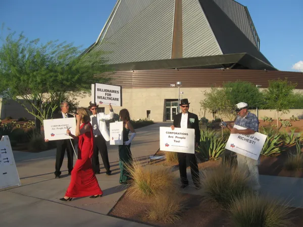 "Billionaire's for Mitt Romney Tempe Arizona Sept 14 2011 001" by codepinkphoenix is licensed under CC BY 2.0.