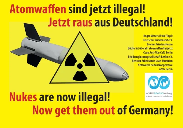 Billboards are going up in Berlin that proclaim “Nuclear Weapons Are Now Illegal. Get Them Out of Germany!”
