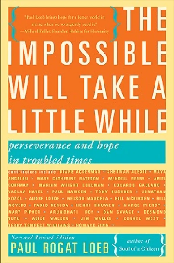 From the wholly updated new edition of The Impossible Will Take a Little While: Perseverance and Hope in Troubled Times, edited by Paul Loeb (Basic Books $18.99 www.theimpossible.org). Other contributors include Maya Angelou, Diane Ackerman, Marian Wright Edelman, Wael Ghonim, Václav Havel, Seamus Heaney, Jonathan Kozol, Tony Kushner, Audre Lorde, Nelson Mandela, Bill McKibben, Bill Moyers, Pablo Neruda, Mary Pipher, Arundhati Roy, Dan Savage, Desmond Tutu, Alice Walker, Cornel West, Terry Tempest Williams, and Howard Zinn.