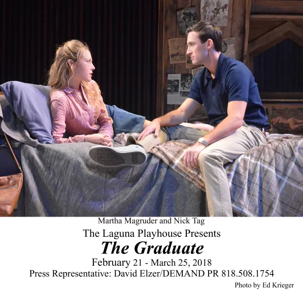 The Graduate is playing through March 25 on Tuesdays through Saturdays at 7:30 p.m.; 2:00 p.m. on Thursdays and Saturdays; and Sundays at 1:00 p.m.; with additional Sunday performances on March 18 and March 25 at 5:30 p.m. at the Laguna Playhouse, 606 Laguna Canyon Road, Laguna Beach, CA 92651. For more info: (949)497-2787; www.LagunaPlayhouse.com.