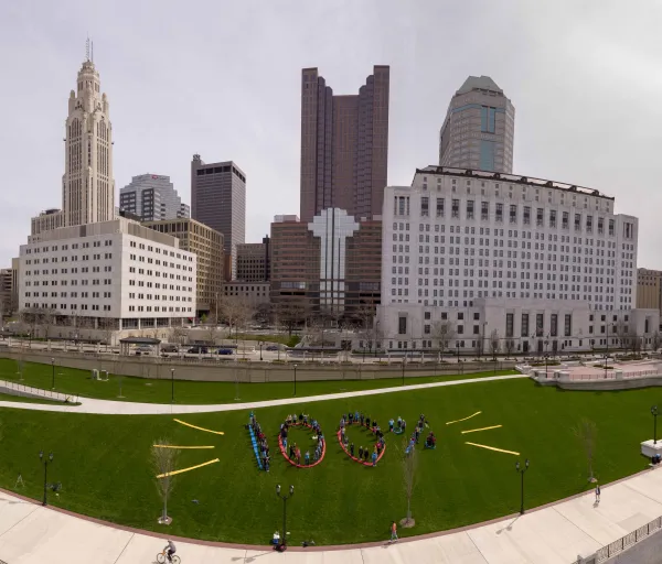 Ready for 100 aerial art on Scioto Mile on Earth Day 2018.