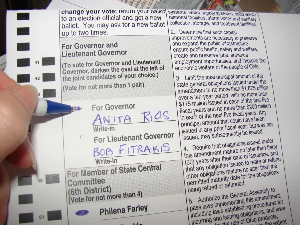 Green Party voters found it difficult in many counties, particularly Franklin County, to cast a write-in vote on the electronic voting machines. When voters pulled a Green Party ballot the voting machine would give them the option for a write-in without it mentioning what race it was for and Ohio Secretary of State Jon Husted issued a directive preventing pollworkers from handing voters a list of official statewide write-in candidates unless the voter specifically requested it.