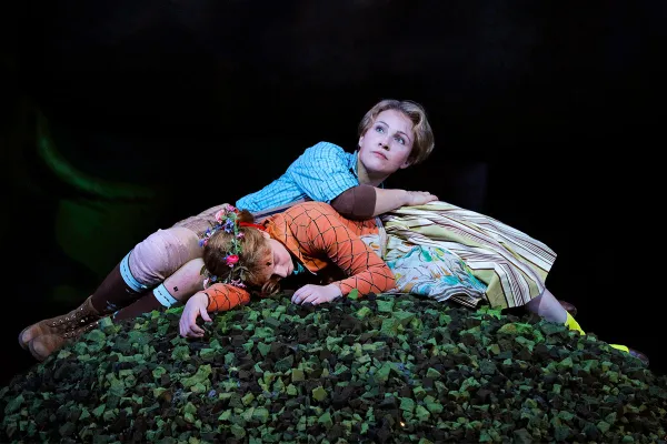 LA Opera’s bewitching Hansel and Gretel may be the most enchanting, optically opulent opera this reviewer has ever seen at the Dorothy Chandler Pavilion. With its stellar stagecraft , stagemanship and eye- popping, jaw-dropping scenery designed by director Doug Fitch with lighting by Duane Schuler, the audience is transported into a spellbinding, haunted forest full of spirits, including a Dew Fairy (Georgia soprano Sarah Vautour), a Sandman (North Carolina mezzo-soprano Taylor Raven), plus a spooky witch (mezzo-soprano Susan Graham, who’s quite the ham).