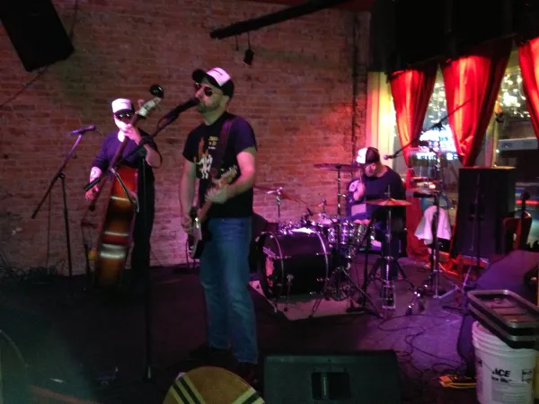It's 6:45 on a Friday evening, and the Honky Tonk Happy Hour is rolling at the Shrunken Head. Singer-Songwriter Chad Lee Williams has just finished up his set and has headed to the bar where a mixed crowd of band invitees and regulars are milling around. Most have finished the drinks they hoarded during the Head's "Happiest Hour" from 5-6 (75 cent drafts and shots!), and must now content themselves with a mere happy hour discount. Onstage the Hellroys have just launched into their unhinged brand of rockabilly and are starting to pick up steam. Host Matt Monta tracks down each new guest as they walk in the door and gives them a raffle ticket for the nightly prizes of band memorabilia and a home baked pie. Perhaps because it’s the beginning of a Friday night, the mood is laid back – even jovial. The Hellroys finish their first song, tell a couple of jokes, and smash back into their set.