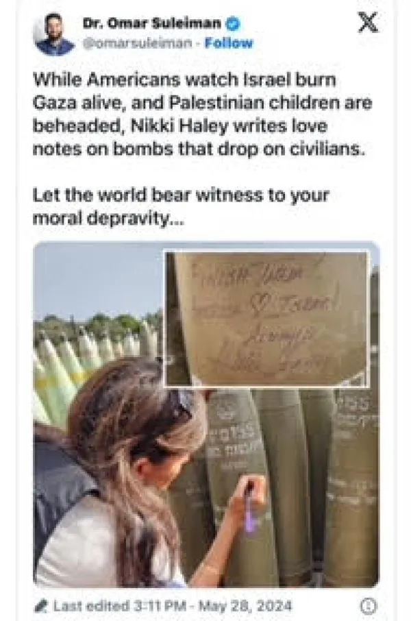 - * First of all, most of Nikki Haley's campaign funds came from the defense industry and the pro-Israeli lobby.* During her campaign for President, Nikki Haley was willing to go on her hands & knees for the Jewish vote and moneyby pledging to cut all US aid to foreign nations that are Israel-unfriendly.* Haley spent her tenure at the UN Assembly passing the anti-Palestinian and anti-Iranian resolutions where Israel has been condemned more than 400 times against the US wishes.* Miss Nikki urged Americans to spy on their fellow American citizens by publishing every name and picture of the pro-Palestinian protesters in cities and universities across America. Reason? They are opposing the Israeli genocide and don't want their tax money going into slaughtering Palestinian women and children.* Haley flew to Israel, met with the IOF soldier, and scribbled with a sharpie on artillery shells, "FINISH THEM! Not Hamas, or Jihad, but all 2.2 million Palestinians in Gaza. What do you expect from shameless Nikki who changed her birthname to appease her white surroundings?* Haley told America that Trump is too old to lead America and that she is young and better fit.* Mike Pompeo is another Republican who sold his soul to the devil. He does not put America first. He put Israel first and thereby threatening US citizens abroad. He spent the last 4 years attacking Palestinian defenders. He has forgotten that he is an American citizen.* Mike Pompeo was the first US secretary of state to visit an illegal Jewish settlement in the Israeli-occupied West Bank, practically giving Israel a stamp of approval of the right to steal and repossess Palestinian lands.* On November 19, 2020, Pompeo overturned a state department's legal opinion that said the settlements were "inconsistent" with international law, according to BBC report.* Pompeo spent his last weeks in office as a Sec. of State hopping from one country to another in the Middle East and Africa, coercing them to recognize the so-called "only democracy in the Middle East." He used entrapment, intimidation, and blackmail to force other countries in the region to recognize Israel.* One month before he left office, Pompeo classified any criticism of Israel's war crimes as anti-Semitic. So, according to him, it will be an offense to support human rights and international law. The new plan will equate any criticism of Israel with antisemitism as an attempt to silence pro-Palestinian advocates. That takes a very twisted mind to come up with such a plan. I was happy for Sec. Pompeo when I learned that he has lost 90 lb., but I believe this man has lost his marbles too.It's time for hawkish people like Haley, Pompeo, and other Israeli cheerleaders in the US to accept the fact that the occupied people of Palestine have a right to resist the occupation in every way possible. Resistance is not a crime! It is a duty! Under UNGA Resolution, 37/43 Palestinians have the right to resist foreign occupation by all available means, including armed struggles.Finally, President Trump's savvy move illustrates that neither Haley nor Pompeo are "the brightest lightbulbs in the chandelier."Mahmoud El-Yousseph is a Palestinian freelancer for Islamicity.com, ColumbusFreePress.com, and The Ugly Truth.XYZ. He can be reached at elyousseph6@yahoo.com.