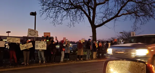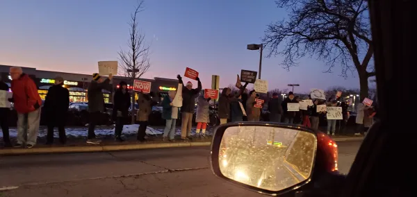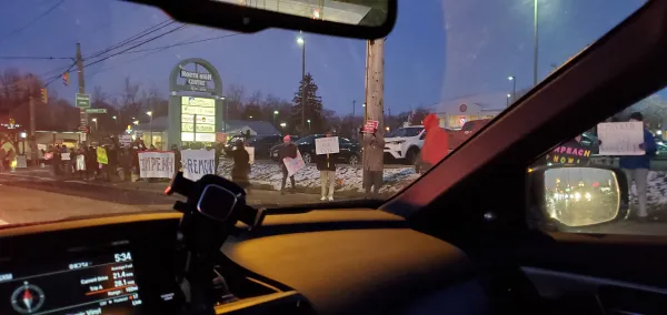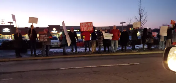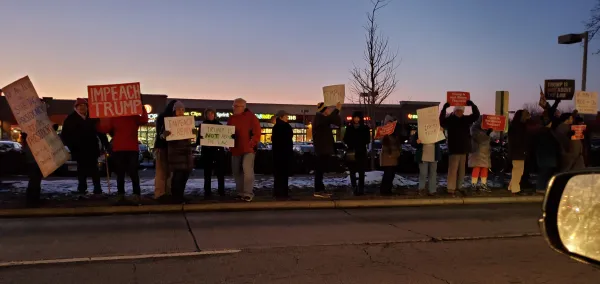 Approximately 1500 people lined High Street at Graceland Shopping Center in support of the Impeachment of Donald Trump on Tuesday Dec 17th. It was one of many actions held around the country. People lined both sides of the street, from Bob Evans on the north to the Goodyear location on the south. More than 200,000 people gathered at events in every state. There was a second local event in Westerville. Of course, the crowd was peaceful but annimated. Cars honked in support throughout the event.