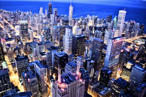 Chicago skyline. Jesse Collins, CC BY 3.0 <https://creativecommons.org/licenses/by/3.0>, via Wikimedia Commons