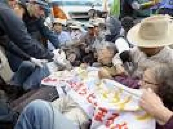 Now, Takae residents and solidarity activists from other parts of Okinawa maintain 2 protest camps that block either end of an access road to two of the helipad construction sites. Two more entrances to 2 already constructed helipads are permanently blocked with parked beater vehicles surrounded by a kind of welded scaffolding. At least a few activists watch the road to the unfinished helipads 24 hours a day, often in rotating shifts. So far, construction vehicles have been unable to enter the access road in order to finish building the helipads.