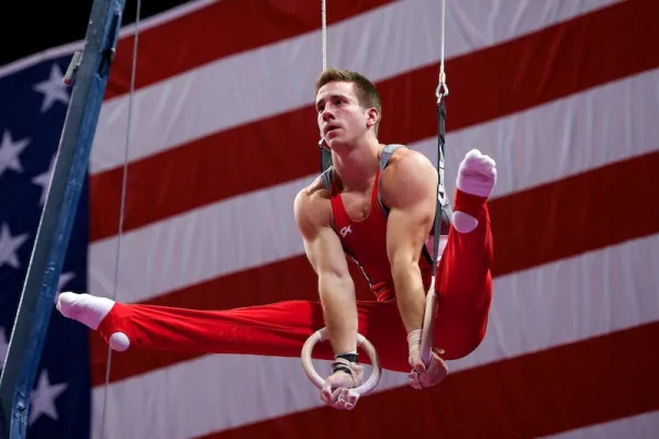 Andrew Rickly finished third on the rings during the P&G Championships Aug. 15-18 in Hartford, Conn. (photo by John Cheng)