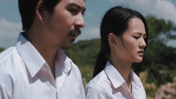 This has the makings of a first rate political thriller, but for whatever reasons, alas, that’s not the movie Suwichakornpong goes on to tell. In a fragmented way Dark flashes back and forth, from past to present, character to character, and along the way, it probably leaves most viewers behind in the, well, dark. It turns out that - just as the opening scene of shirtless students (the females bra straps visible) lying face down on the floor of what seems to be a classroom, guarded by rifle-wielding soldiers and/or paramilitaries, is actually mise-en-scène for a movie being shot about the student massacre - little, if anything, is as it appears to be in this complex film.