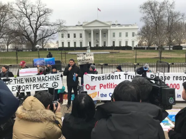 Opponents of military base construction in Okinawa gathered in front of the White House in Washington, D.C., in support of a petition which has gathered well over 100,000 signatures.