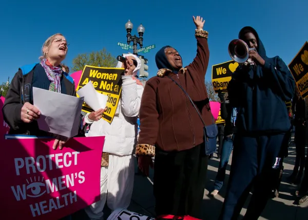 Hundreds of activists gathered in front of the Supreme Court on March 27, 2012, to show support for the Affordable Care Act during the second day of hearings regarding the law. Ms Magazine. (David Sachs / SEIU); cc by NC 2.0