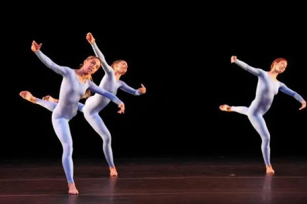The first dance was an adaptation of renowned Americano choreographer Merce Cunningham’s “Fielding Sixes”, with music by minimalist John Cage. The female dancers were clad in sky blue tights and leotards while the men’s similar outfits were burgundy; all were barefoot. They varied in number onstage. Much of the recorded music sounded literally like fiddling about, and the dancers often moved about in a herky-jerky manner, like puppets on strings.