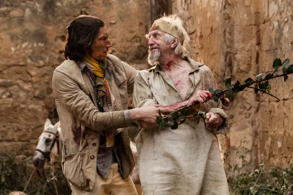 Thirty years later, what’s now being released is a mildly amusing mishmash starring Adam Driver as Toby, an American filmmaker and advertising director abroad in Spain who’d previously directed a low budge indie version of Cervantes’ work. The Spanish cobbler he’d cast to portray the lead (Jonathan Pryce) about a decade earlier actually believes he is now, indeed, Don Quixote, and when he re-encounters Toby, that the helmer is his faithful squire, Sancho Panza.