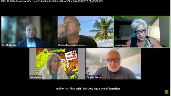 Chair SUSAN YOUNG of the Pacifica Radio National Board pitches your participation in the current national delegate election and the need for impartial observers to guarantee a fair outcome.