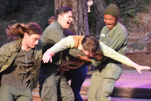 Director Ellen Geer’s iteration of Merry reminded this transplanted Manhattanite of the New York Shakespeare Festival’s storied 1971 production of Two Gentlemen of Verona, which impresario Joe Papp and Hair’s composer Galt MacDermot transformed into a rock musical, transported from Italy to NYC and rocketed Raul Julia to stardom. After the musical moved from Central Park to Broadway, NY Times critic Clive Barnes rhapsodized: