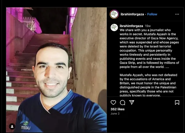 Mustafa Ayash is the founder and director of the Gaza Now News agency, which has 1.81 million followers. Like all other journalists, doctors, scholars, teacher, and infants on incubators, the IDF accused them of being Hamas members or providing material and technical support to Hamas. Most of the time, the IDF justify killing civilians in Gaza because they voted for Hamas even though most of the victims were not even born or eligible to vote during the 2006 first Palestinian election, which Hamas won. In addition, Israeli soldiers prefer to kill Palestinian children before they grow up and have a chance to fight against the occupation. They are simply a soft target! That's how the IDF earned the title "baby killers."