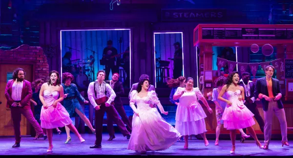 Mystic Pizza is a thoroughly enjoyable, consummately unoriginal musical play, from top to bottom. This retread of the 1988 movie is essentially a coming of age story about three young women in the eponymous Mystic, a seaside town in Connecticut. The trio – Daisy Arujo (Krystina Alabado), her sister Kat (Kyra Kennedy) and their friend Jojo Barboza (Gianna Yanelli) – are searching for romance and their pathways in life, yearning for a more fulfilling life than mere housewifery and drudgery in proletarian Mystic. This timeworn plot is, however, set in a fairly novel social milieu, namely a community with many residents of Portuguese descent, a minority group that doesn’t get much attention in U.S. pop culture.