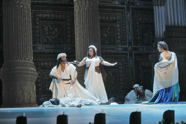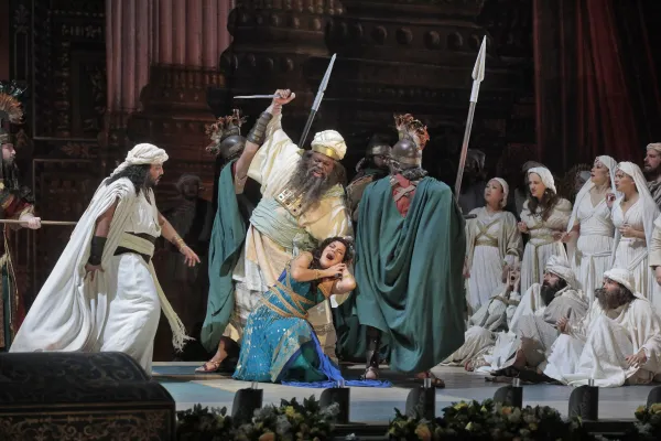 In addition to stellar scenery, Mattie Ullrich’s glorious costumes help transport us back in time. Morris Robinson is attention-grabbing as Zaccaria, spiritual leader of the Hebrews - an interesting stage transition as he previously portrayed the Islamic zealot Osmin in LA Opera’s 2017 production of Mozart’s The Abduction from the Seraglio. (Oy!) Be that as it may, having the Atlanta-born Robinson portray an Israelite seer lends new meaning to the much-vaunted Black-Jewish alliance (America’s two most liberal ethnic voting blocs). Robinson’s rendition of “Sperate, o figli,” exhorting his people to remain resolute in their resistance, is inspiring.