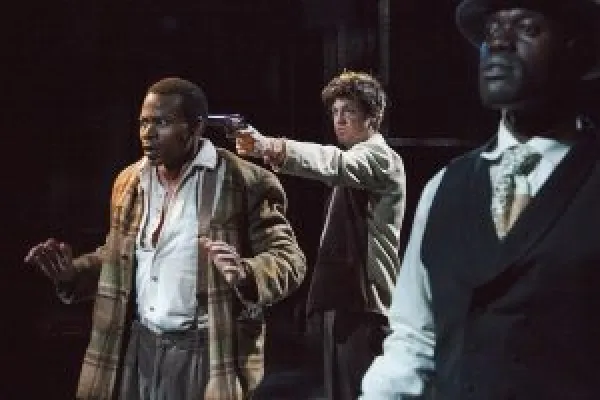 Actually, they might be among those who most need to sit through this guided tour of hell, wherein 20-year-old African American Bigger Thomas (Jon Chaffin) commits sensational, heinous crimes and becomes the subject of an intense manhunt in Depression-era Chicago. In Kelley’s adaptation the hapless Bigger has what W.E.B. Du Bois (who also, for some reason, eventually joined the CPUSA) called “double-consciousness,” a “sense of always looking at one’s self through the eyes of others,” as personified by his other self called the Black Rat (Noel Arthur). (Psychoanalyst Frantz Fanon, that apostle of Third World revolution, advanced a similar notion about the schizophrenia of the colonized in 1952’s Black Skins, White Masks.)