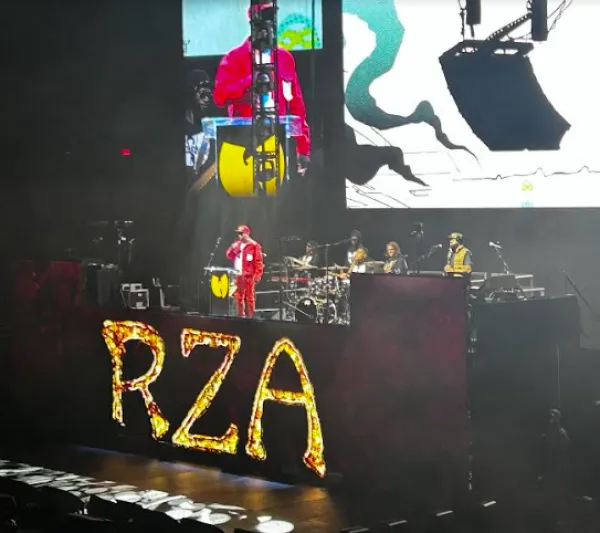 We are now looking at a RZA sign in front of live band in an elevated platform. GZA enters with “Clan in the Front.”